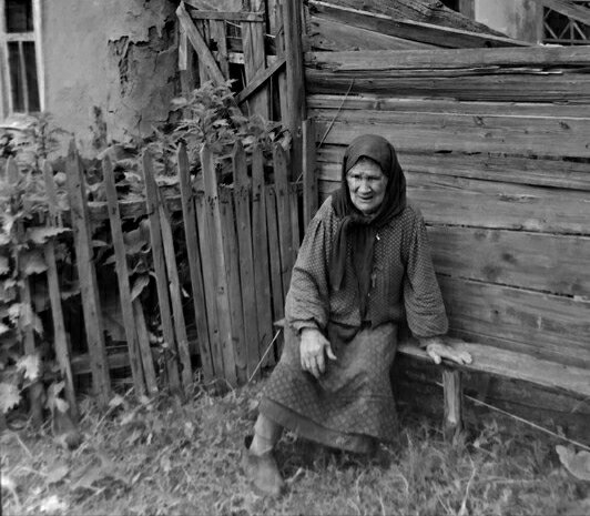Баба Нюра сидела на скамье перед сломанным забором в одиночестве, усталая и опустошенная.